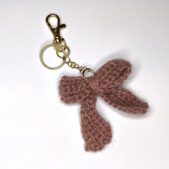 Brelok szydełkowy z wełny KOKARDKA RÓŻOWA